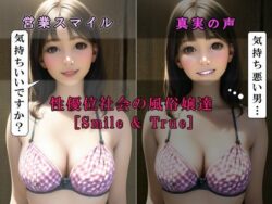 女性優位社会の風俗嬢達[Smile&True]【いじめっ娘通信】 女性優位社会を舞台に、風俗嬢達の魅力が光る作品。いじめっ娘通信の独特な世界観が際立つ。下着や女性優位をテーマに、男性向けの成人向けコンテンツを提供している。専売作品なので、他では見られないユニークな内容が楽しめる。 同人